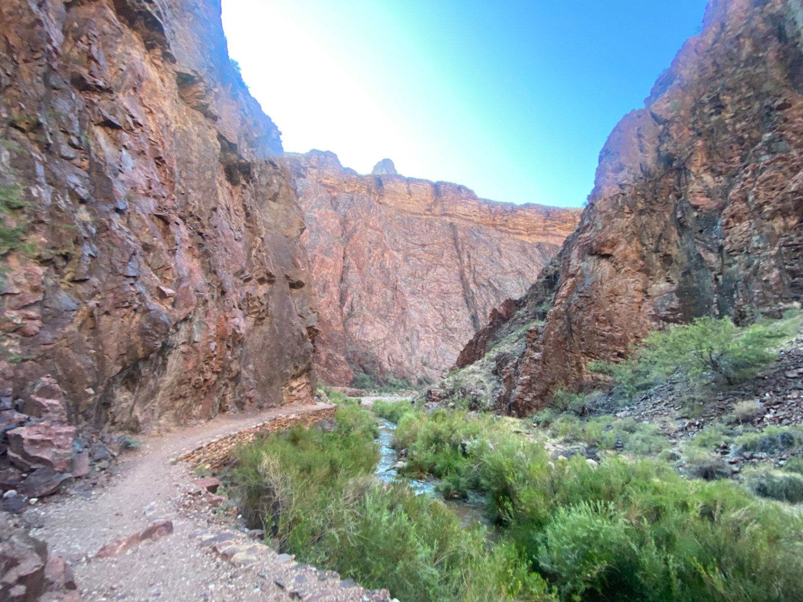 8. Heading back up the canyon, near Ribbon Falls around mile 18.