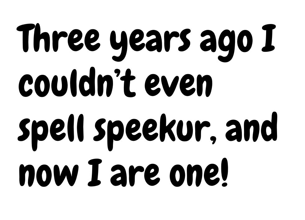 When I wrote about writing's advantages over speaking, I said when you write you don't have to worry about getting pronunciation right. But when you write, you do have to concern yourself with correct spelling. Out loud, nobody can tell how you spelled the word unless you put it on a slide.