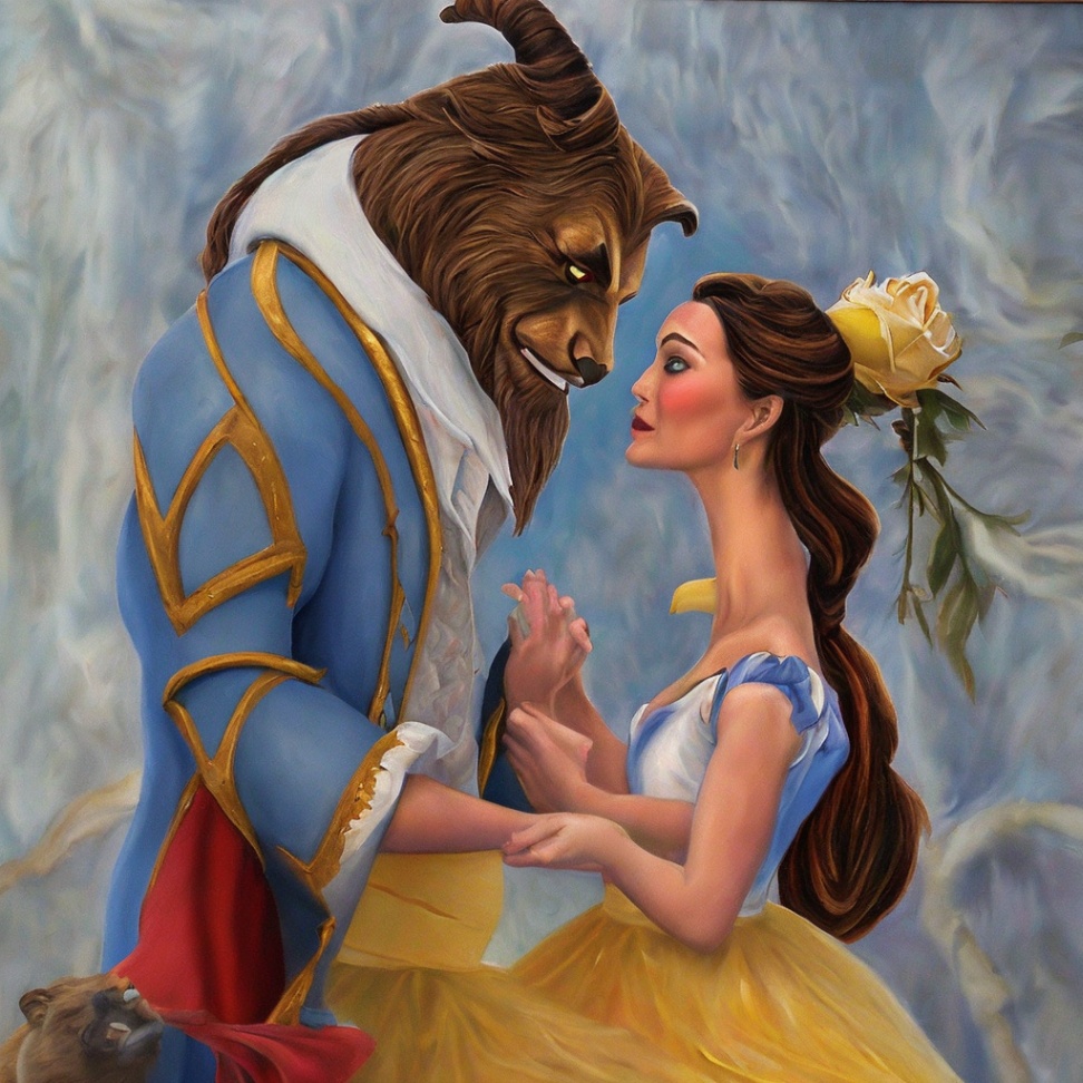 In the story of "Beauty and the Beast," a beautiful young woman named Belle encounters a beast who is cursed to live in the form of a hideous creature. As Belle spends time with the Beast, she sees beyond his external appearance and discovers his kind and loving nature. Through her unconditional love, the Beast is transformed back into a handsome prince.
