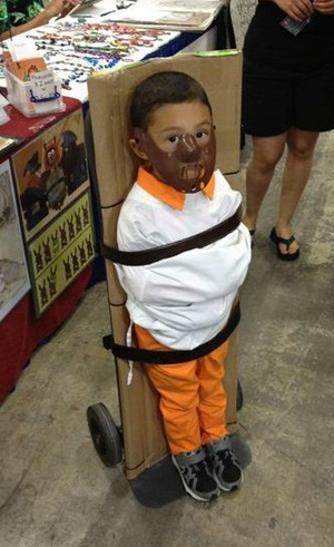 I love these "piggyback" costumes. Got this for a bug-themed haunted house (software joke).